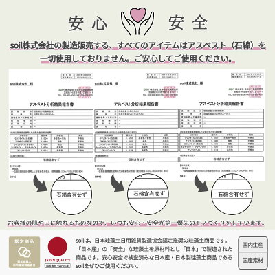 管理番号:cogr copk cowh「soil(ソイル)」は日本国内での製造・日本国内産 珪藻土を使用しており、【日本珪藻土日用雑貨製造協会】の厳しい検査基準に適合している製品となります。