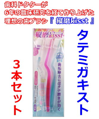 歯科臨床から生まれた 縦磨kisst 3本セット (タテミガキスト) ピンク ブルー クリア 歯ブラシ デンタルケア 歯垢除去 【配送方法:ゆうパケット2】